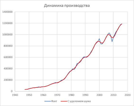 DOI: 10.7256/2454-0714.2025.3.75317EDN: OPDYKYДата направления статьи в редакцию: 27-07-2025Дата публикации: 03-10-2025Аннотация: Анализ данных, описывающих те или иные объекты и процессы предназначен, прежде всего, для нахождения зависимостей внутри них и выявления динамики их развития. Целями анализа и прогнозирования является подготовка материалов для принятия обоснованных решений. В данной работе рассматриваются этапы, методы и алгоритмы проведения анализа, направленные на получение, в первую очередь, функциональных зависимостей, пригодных не только для описания, но и прогнозирования поведения изучаемых объектов и процессов. Сам анализ рассматривается как многоэтапный процесс, включающий подготовку данных, выявление и удаление по возможности шума в данных, нахождение долговременного тренда, выявление колебательной составляющей, периодичности колебаний, оценку динамики амплитуд колебаний, оценка точности возможной аппроксимации процесса и возможности его прогнозирования с учетом уровня зашумленности данных. Предложен ряд процедур, обеспечивающих обоснованную проверку гипотез о ходе процессов и получение аналитических, в том числе и дифференциальных зависимостей на основе методов оптимизации подбора параметров нелинейных зависимостей. Рассмотренные методы позволяют проводить достаточно объективный анализ данных и создают условия для построения обоснованного прогноза. Проведен численный анализ по данным многолетней статистики динамики производства. Научная новизна исследования заключается в разработке методики декомпозиции процесса на трендовые и колебательные компоненты. В отличие от большинства существующих исследований анализа динамики процессов большое внимание уделяется учету и оценке уровня шума с определением пределов точности получаемых результатов и, тем более, прогнозов, что позволяет избегать необоснованных выводов и решений и построения «слишком» точных результатов на основе недостаточно точных исходных данных, исходя из требований гладкости функции при имеющемся уровне шума. Использование функций ограниченного роста и выявление точек смены тренда позволяет проводить корректное качественное долгосрочное прогнозирование без необоснованного предсказания катастрофического хода изучаемого процесса. Полученные результаты позволяют получить аналитическое выражение изучаемых, прежде всего экономических процессов, что позволяет не только аппроксимировать поведение процесса, но и выявлять его физическую сущность и, соответственно использовать полученные решения на целый класс процессов аналогичной природы. Ключевые слова: анализ данных, временной ряд, удаление шума, долгосрочный тренд, оценка точности, аппроксимация данных, нелинейная регрессия, проверка гипотез, ограниченный рост, анализ колебанийAbstract: The analysis of data describing certain objects and processes is primarily intended to find dependencies within them and to identify the dynamics of their development. The goals of analysis and forecasting are to prepare materials for making informed decisions. This work examines the stages, methods, and algorithms of conducting analysis aimed at obtaining, primarily, functional dependencies that are suitable not only for description but also for predicting the behavior of the studied objects and processes. The analysis itself is viewed as a multi-stage process that includes data preparation, identifying and removing noise from the data as much as possible, finding a long-term trend, identifying oscillatory components, periodicity of fluctuations, assessing the dynamics of amplitude fluctuations, evaluating the accuracy of possible approximations of the process, and the feasibility of forecasting consid