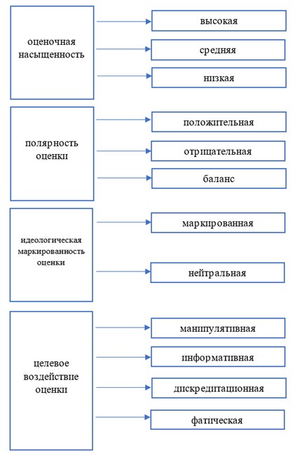 Рис. 1. Конкретизированная модель лингвоаксиологических параметров дискурса спортивных электронных СМИ